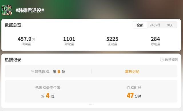 祝福!“韩德君退役”词条最高登上热搜第4 目前暂列第6位 直播吧9月1日讯 辽宁男篮官方宣布,功勋老将韩德君正式退役,结束十八年辽篮生涯。随后,“韩德君退役”词条最高登上过热搜第4,目前暂列热搜... 西甲 2026.01.17 0 130